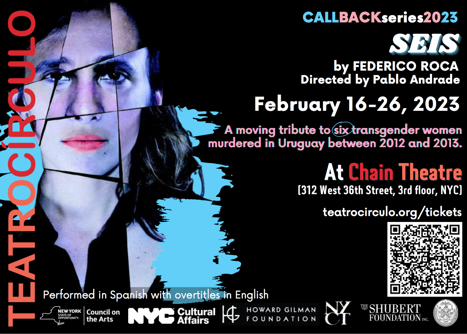 En febrero, Teatro Círculo presenta ‘Seis’ de Federico Roca, una conmovedora obra sobre seis casos no resueltos de mujeres transgénero asesinadas en Uruguay. ‘Seis’, dirigida por Pablo Andrade, se presentará en español con sobretítulos en inglés como parte de CALLBACKseries 2023 del 16 al 26 de febrero.